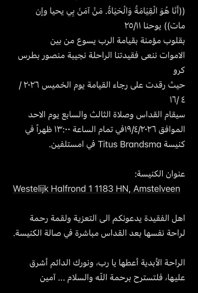 صلاة الثالث والسابع للمنتقلة المرحومة نجيبة منصور بطرس